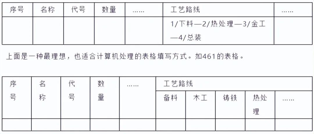 其中在每个工序或工步上要特别注明在本工序上装入零部件代号、名称和数量。
