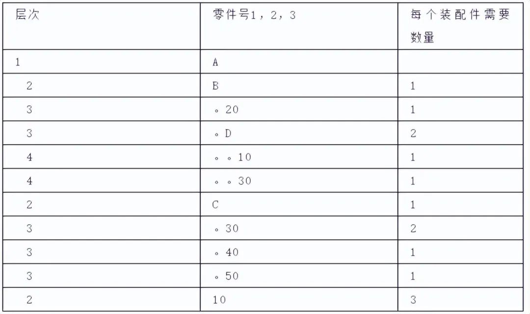 实质是PBOM的构造,如何处理从现有思路是没有答案的。答案在于好好研究装配工序卡编制规则的开发和汇总设计。