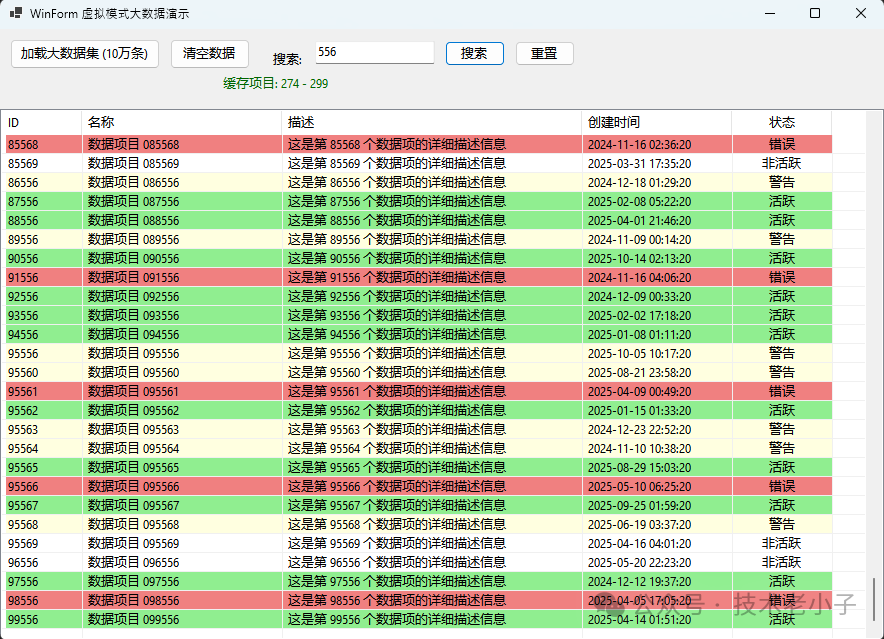 statusLabel.Text = $"✅ 成功加载 {virtualData.Count:N0} 条记录,耗时: {stopwatch.ElapsedMilliseconds} 毫秒";
