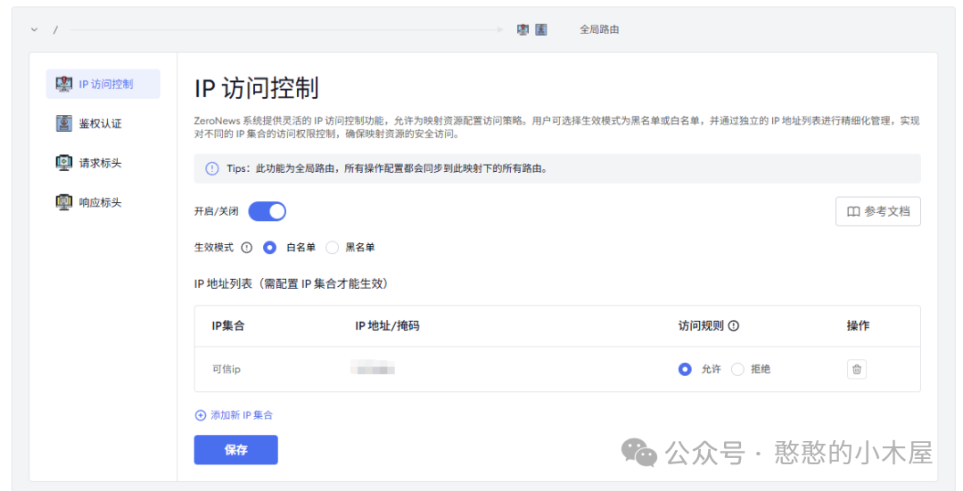 那部署完成之后,为了内网安全,肯定是要额外配置安全防护。ZeroNews自带的ip控制功能,可以实现不同的地区用户访问不同的资源。比如我们希望这个映射只能被美国地区的用户访问,那我们可以配置ip访问控制,实现此映射只能被对应地区的用户访问。