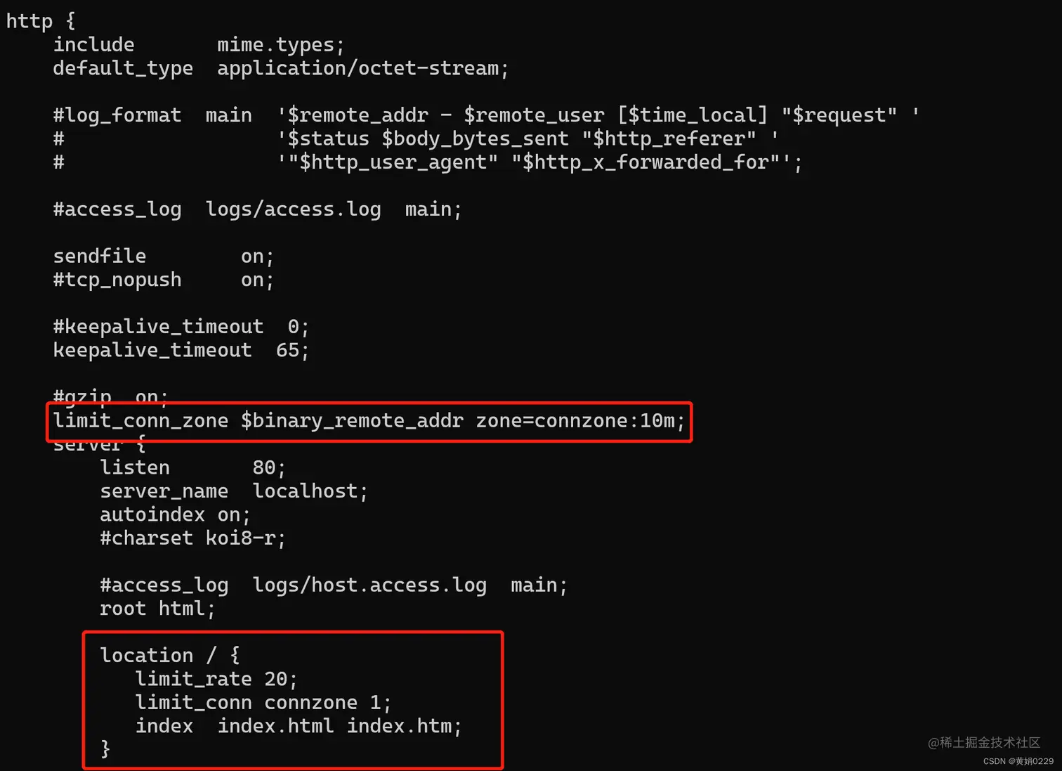 • limit_conn_log_level:日志等级,用于记录请求详细信息。