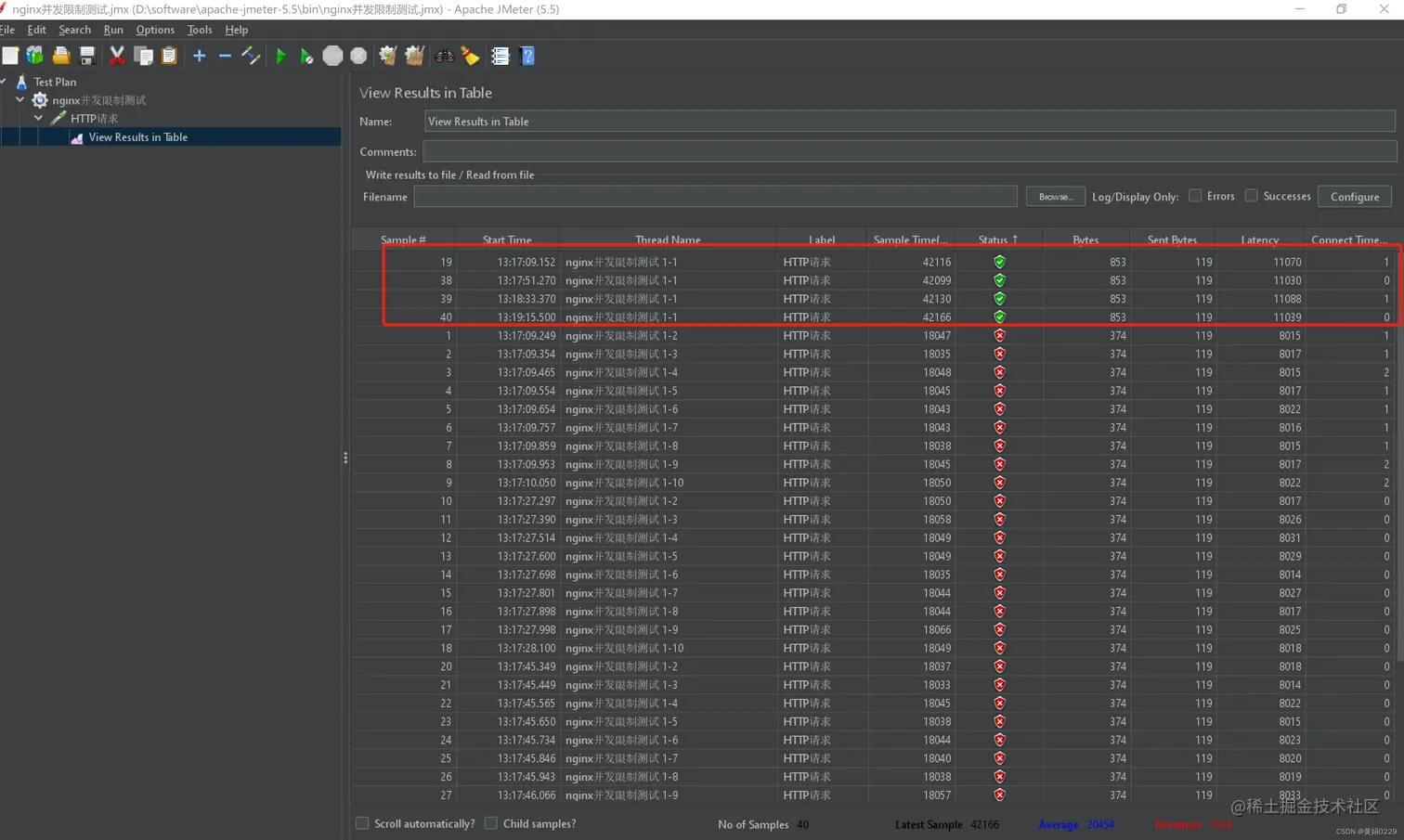 如下图,可以看到有4次成功,并且都是在线程组的第一个成功,说明限制并发数1生效