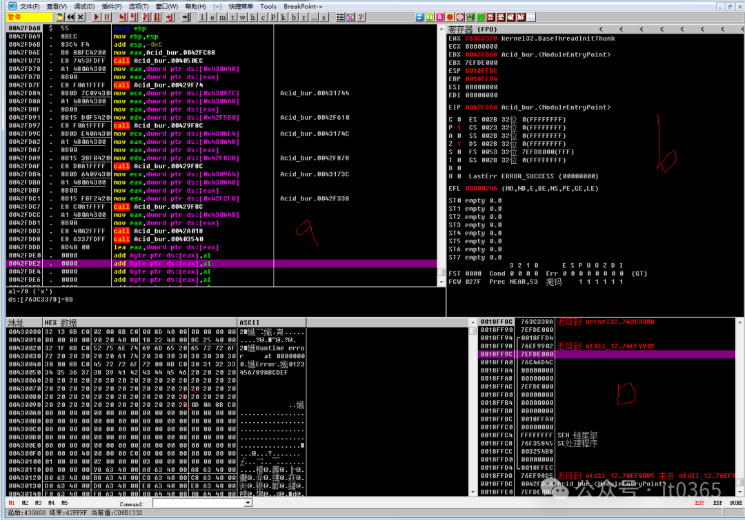 直接提示了错误信息。那好,直接记住这个错误提示,在OD内去找它的提示信息。