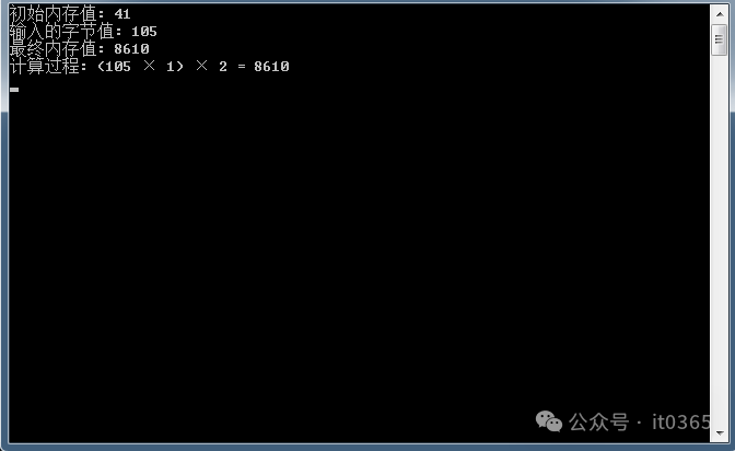 printf("初始内存值: %u\n", memory_value);printf("输入的用户名:%s,字节值: %u\n","it0365", test_byte);