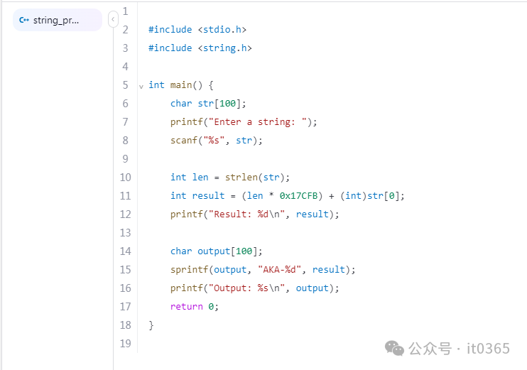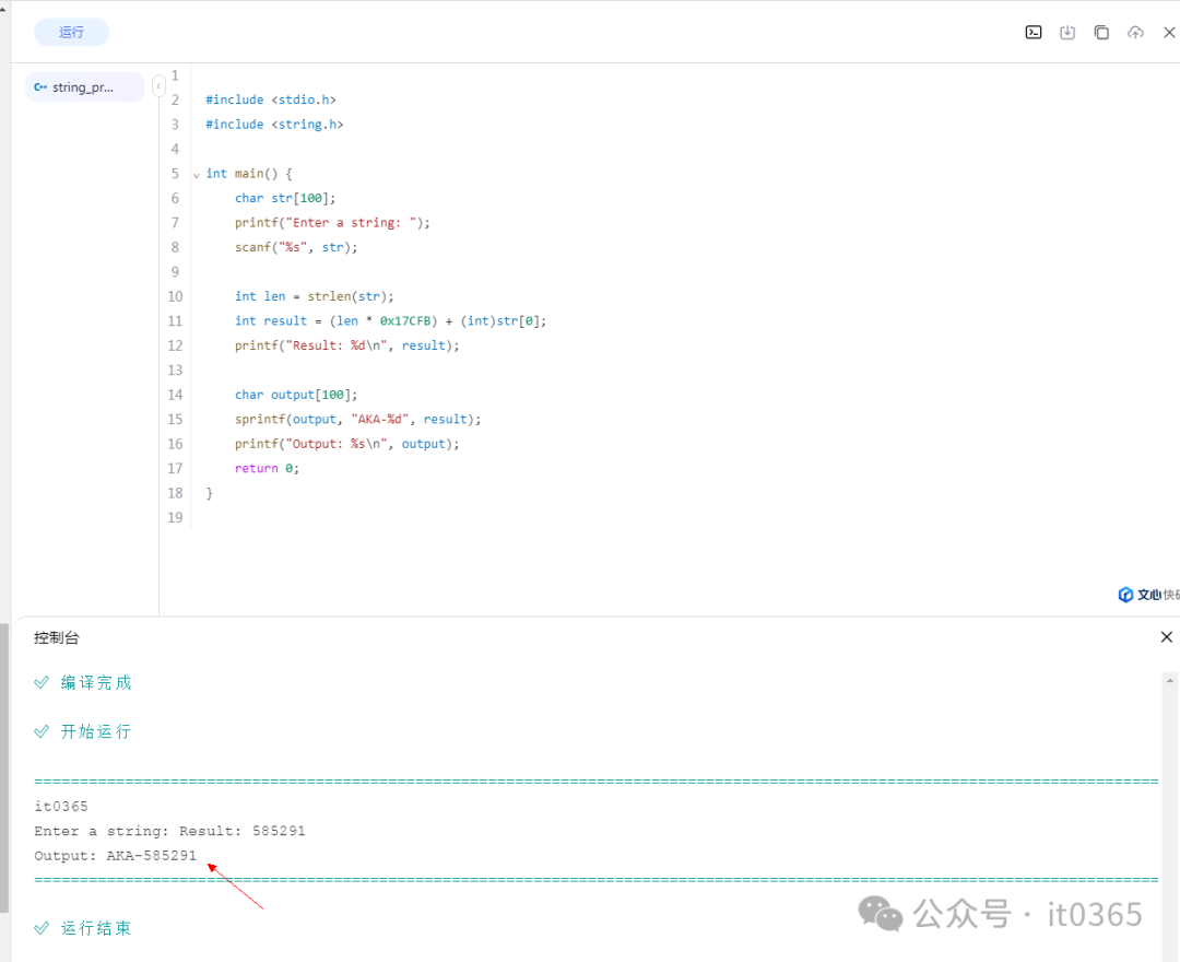 char output[100];    sprintf(output, "AKA-%d", result);    printf("Output: %s\n", output);    return 0;}