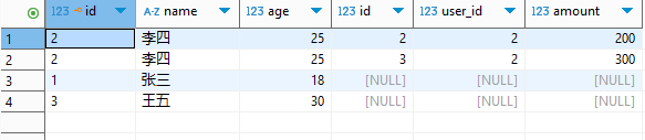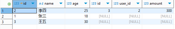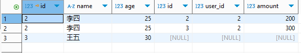 INSERT INTO `ysjz_order` VALUES (1,1,100),(2,2,200),(3,2,300),(4,4,500); -- 注:user_id=4无对应用户