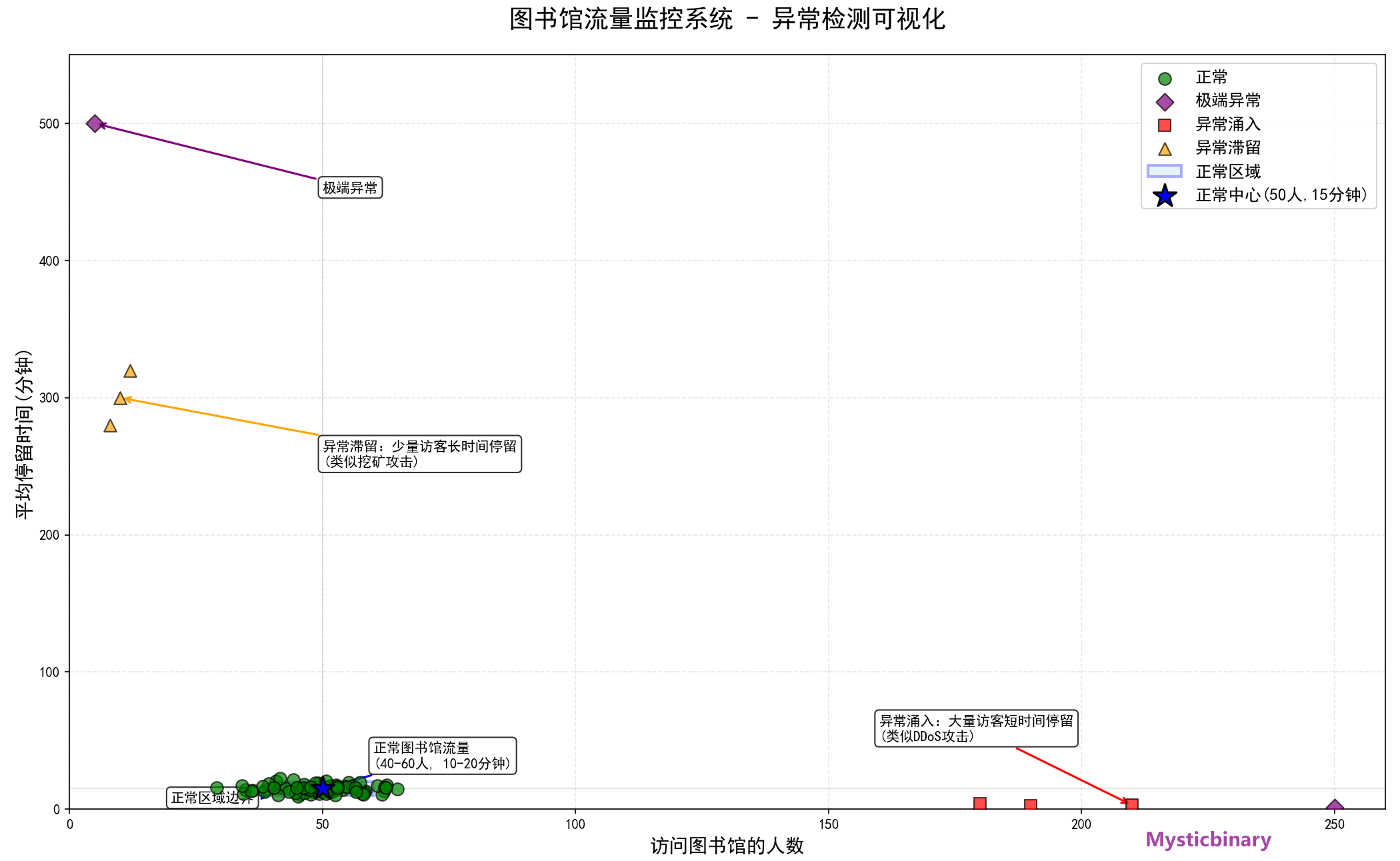 异常点: (210, 3)  ← 人数暴增,停留时间极短