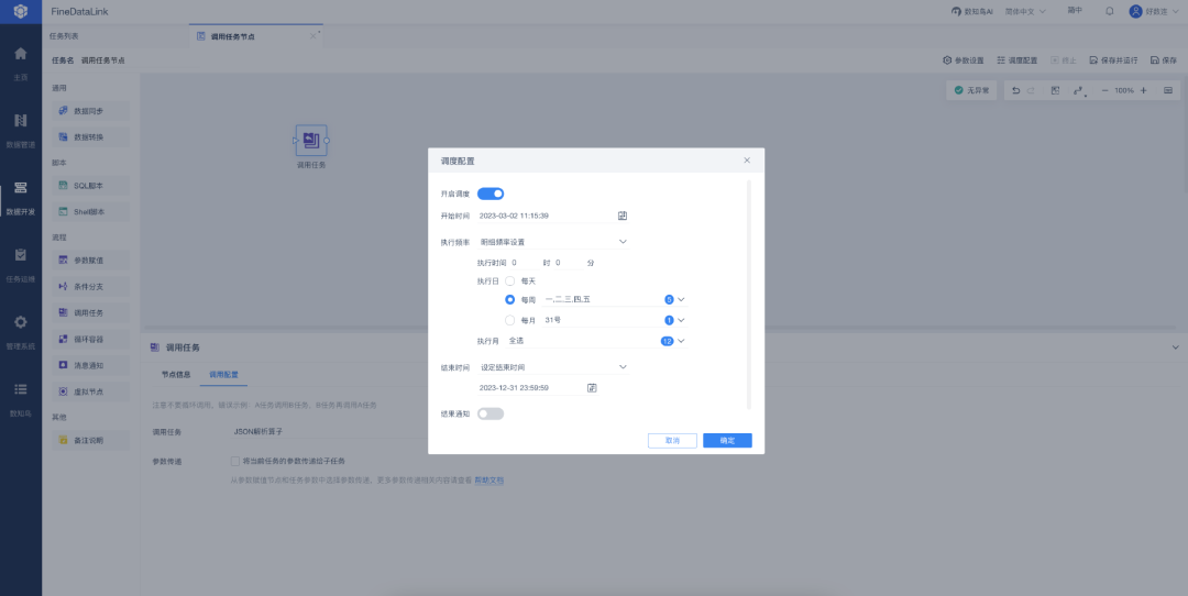 • 可视化流程搭建:通过拖拽的方式配置数据任务,比如“每天凌晨2点,从A数据库的订单表取出新增数据,计算一下销售额,然后存到B数据库的报表表中”。这个过程可以不用写复杂的代码。