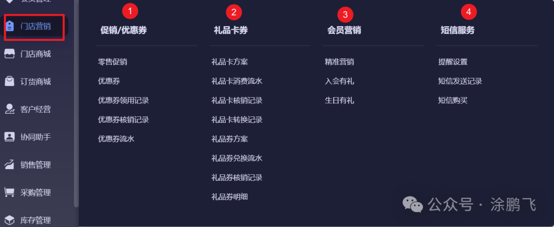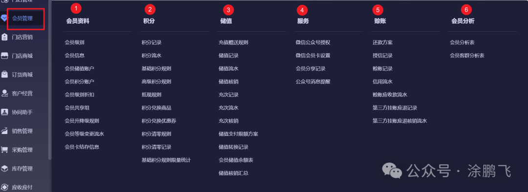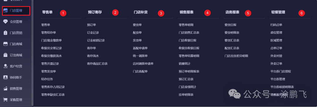 接下来,我将带领大家去查看金蝶云星辰旗舰版各个功能菜单的去全貌。 快捷应用![]() 快捷应用提供了我的收藏、增值服务、生态服务功能。其中我的收藏可以将常用的功能收藏于此,后续可以通过此链接直接快速进行对应的功能页面。 老板看板![]() 老板看板主要提供了利润分析和资金分析这两块针对小型企业非常重要的功能,小型企业一般处于发展阶段,主要为赚取利润为主,同时要保证现金流的正常。 门店管理![]() 门店管理的功能非常丰富,有零售单、预计寄存、门店补货、销售报表、店务报表、轻餐管理者几大核心功能子模块。 ①零售单:负责门店零售业务,包含零售单、结存单,管理现金缴款、收银员交接班及开票、发货等,是门店销售的核心操作入口。 ②预订寄存:管理预订与寄存业务,涵盖预订单、订金记录及核销,同时处理寄存单、流水与商品汇总,还支持门店直配,支撑门店预订类服务。 ③门店补货:统筹门店补货流程,包含要货单、配货单、发货单,支持返配申请、统一调拨及店间调拨,保障门店库存补给高效。 ④销售报表:统计门店销售数据,含零售单明细、销售汇总表、收银日报、销量统计等,还能跟踪预订单与挂单,助力销售进度监控。 ⑤店务报表:记录门店后勤数据,涵盖要货日报、明细 / 汇总表、配货汇总表及出货差异明细,辅助门店补货与库存管理的复盘。 ⑥轻餐管理:支撑轻餐类门店运营,包含扫码点单、桌位 / 区域管理,对接外卖订单,同时管理平台券授权、核销及增值服务购买,适配轻餐场景需求。 金蝶云星辰门店管理模块从零售、预订、补货,到销售统计、店务记录、轻餐运营,构建了门店全场景管理体系,保障门店日常运营高效有序。 会员管理![]() 会员管理是金蝶云星辰系统中提升客户粘性与运营效率的重要模块。 ①会员资料:管理会员核心信息,包含会员级别、信息、储值 / 积分账户,同时配置级别折扣、共享组、升降级规则,是会员管理的基础信息载体。 ②积分:运营会员积分体系,涵盖积分记录、流水,可设置基础 / 高级积分、抵现、清零规则,支持积分兑换商品 / 优惠券,实现积分的全流程管控。 ③储值:管理会员储值业务,包含充值赠送规则、储值记录 / 流水 / 核销,同时支持充次、储值支付限额、储值转换,助力储值类会员权益的精细化运营。 ④服务:支撑会员增值服务,涵盖微信公众号授权、会员卡设置,记录会员分享信息,同时配置公众号消息提醒,提升会员服务体验。 ⑤赊账:管理会员信用赊账,包含还款方案、授信 / 赊账记录、信用流水,同时跟踪第三方挂账的应收与核销,规范会员信用交易。 ⑥会员分析:提供会员数据洞察,含会员分析表、客群分析表,助力评估会员结构与行为,辅助会员运营策略优化。 金蝶云星辰会员管理模块从资料管理、积分储值,到服务、赊账、数据分析,构建了会员全维度管理体系,提升会员运营效率与粘性。 门店营销![]() 门店营销是围绕线下实体门店展开的一系列推广与销售活动,核心是吸引客流、提升到店转化率与复购率,金蝶云星辰门店营销主要包含以下: ①促销 / 优惠券:管理零售促销与优惠券,涵盖优惠券的领、核、销全流程,同时记录优惠券流水,是门店短期促销的核心工具。 ②礼品卡券:运营礼品卡券业务,包含礼品卡 / 券方案设置,以及消费、核销、转移等流水记录,助力卡券类营销的精细化管理。 ③会员营销:开展会员精准运营,提供精准营销、入会有礼、生日有礼等功能,通过个性化福利提升会员粘性。 ④短信服务:支撑营销消息触达,可配置提醒设置,记录短信发送轨迹,同时支持短信购买,助力营销信息的及时推送。 金蝶云星辰门店营销模块从促销工具、卡券运营、会员维护到消息触达,构建了门店全维度营销体系,提升门店获客与留客能力。 门店商场![]() 门店商场模块主要是针对企业有大量门店管理的业务设计开发的。聚焦门店线上商城的运营管理:涵盖商品资料与分组管理,可配置商城首页方案、配送规则及整体商城参数;支持商城订单处理,能设置时段限量销售,管理运费模板,同时可维护小程序发货信息。 订货商城![]() 订货商场是面向经销商、零售商等 B 端客户的线上订货交易平台,连接品牌方或供应商与下游渠道。主要包含以下功能清单: ①订货管理:负责订单全流程操作,包含订单确认、支付记录、订单优惠,同时管理运费模板、自提点等,处理到货签收、商品限购与支付退款,是订货业务的执行入口。 ②商城管理:配置商城基础功能,涵盖搭建指南、系统配置、页面方案、小程序 / 公众号设置,还能管理支付与消息提醒,是商城运行的基础支撑。 ③商品管理:管理商城商品信息,包含商品列表、分类、品牌,同时配置客户价格策略,支撑商品的线上展示与定价。 ④客户管理:维护商城客群,涵盖客户列表、等级管理、潜在客户及用户管理,同时设置登录限制,实现客群的分层运营。 ⑤营销:开展商城推广活动,包含批发促销、优惠券、在线推广、小程序直播等,助力提升商城订单转化。 ⑥积分:管理客户积分体系,涵盖积分账户、设置、规则、抵扣及记录,通过积分激励增强客户粘性。 金蝶云星辰订货商场模块从订货执行、商城配置到商品、客户、营销、积分管理,构建了线上订货商城的全流程运营体系。 客户经营![]() 客户经营模块,其实类似与一个简易版的CR