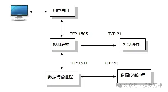 FTP服务器工作原理FTP基于TCP协议服务,默认使用20、21号两个端口,一个数据端口和一个命令端口,端口20是数据端口,用于文件在客户端和服务器之间传输数据流。端口21是命令端口,用于传输控制流,接受客户端发出的相关FTP命令与参数。FTP客户端向FTP服务器发送服务请求,FTP服务器接收与响应FTP客户机的请求,...