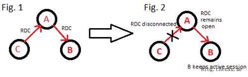 假设用于跑 UI 自动化的机器是虚拟机A,现在再使用另一台虚拟机B作为中转。本机先连接到虚拟机B,然后再从虚拟机B连接到虚拟机A,最后断开虚拟机B。