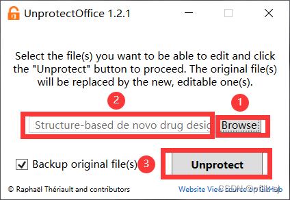 - 下载并打开UnprotectOffice(https://aozora.lanzoui.com/ibS9Fostmud)。