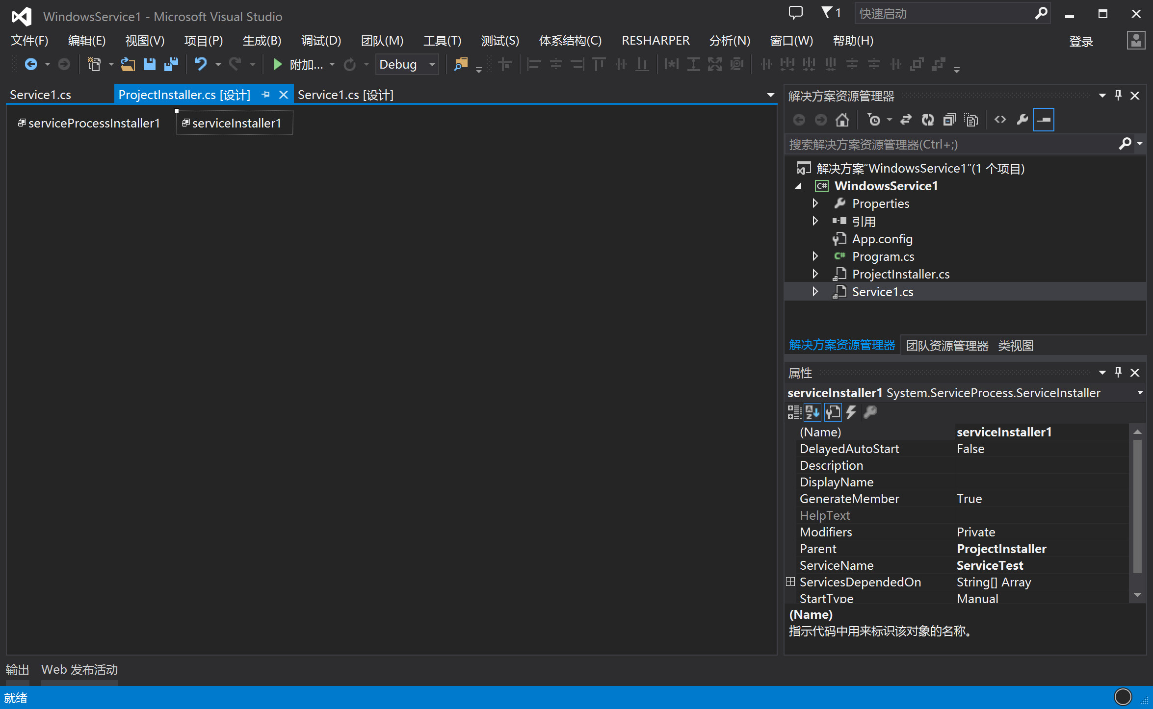 选中serviceProcessInstaller1组件,查看属性,设置account为LocalSystem