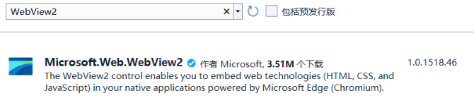 下面这一个,也是基于Chromium,微软爸爸官方出品。 Microsoft Edge WebView2: 微软新推出的Microsoft Edge也是基于Chromium开源项目实现,控件允许在本机应用中嵌入 web 技术(HTML、CSS 以及 Javascript)。WebView2 控件使用 Microsoft Edge 作为绘制引擎,以在本机应用中显示 web 内容。 同样可支持WinForm和WPF,那就继续用winform吧。虽然是官方的,但基于轻量化的理念,也需要NuGet引用下。