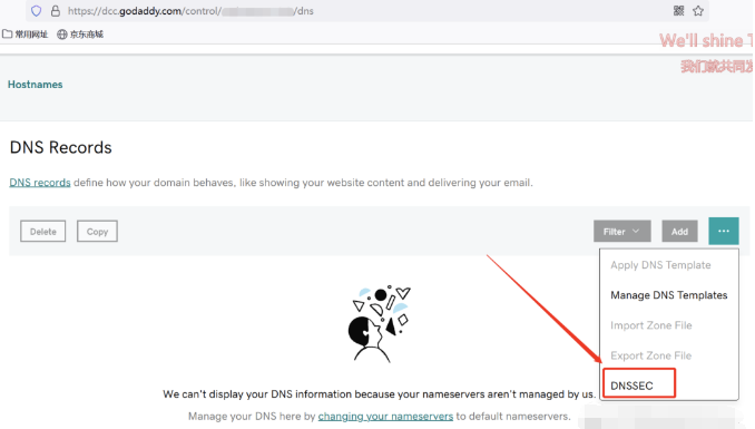 到你的域名注册商设置 DS 记录,我的域名注册商是Godaddy 到域名DNS设置处找到 DNSSEC。官方教程 https://sg.godaddy.com/help/enable-dnssec-on-my-domain-6420