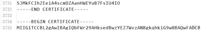 将 fullchain.pem追加到 ca-bundle.crt,需要注意不能直接复制保存,而是在每一个证书开头加一个换行。