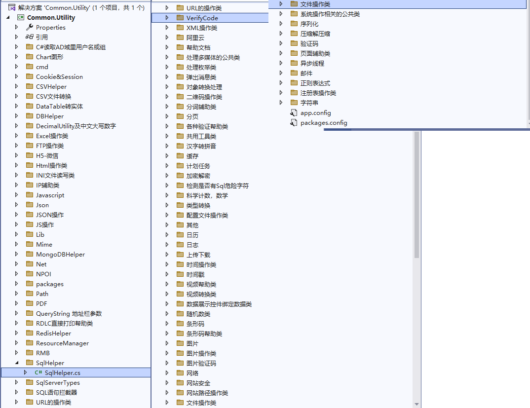 项目简介集合网络上比较常用的C#帮助类、公共类,涉及CSV、数据库、PDF、FTP、IP、时间、字符串、拼音、日历、科学计数、线程、视频、验证码、条形码、加密等内容的帮助类。 技术架构开发工具:VisualStudio SDK:.Net Framework 4.0 项目结构 项目特色 代码注释,比较全面:此帮助类与其他帮助类相比,注释比较全面。 代码集合,功能全面 https://github.com/Jimmey-Jiang/Common.Utility 该文章在 2023/3/10 16:46:52 编辑过 |