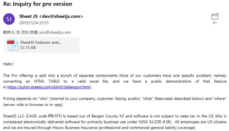 接着我邮件联系了下尝试询问了下pro版的价格: