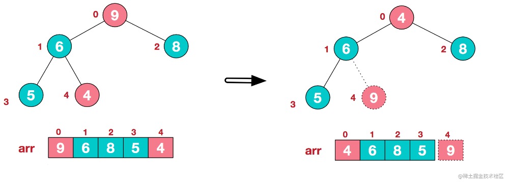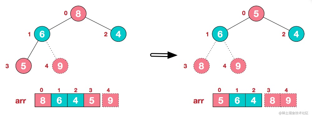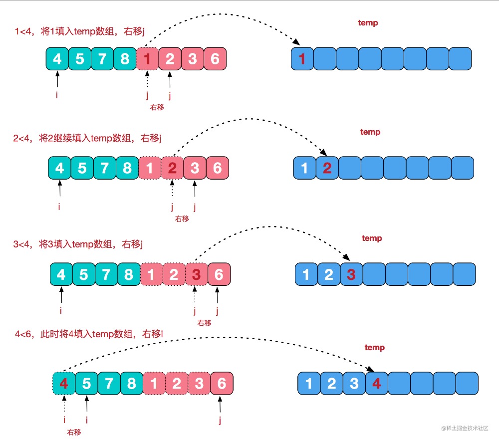 10. const x = arr[i]; // 取出比较值x,当前位置i空出,等待填入