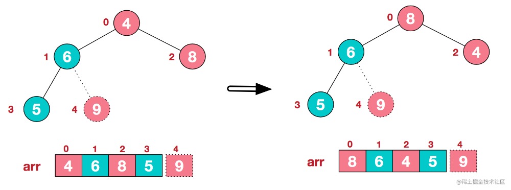 7. // 当下标大的数字,小于 下标小的数字,进行交互