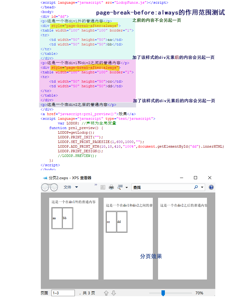 LODOP在WEB页面打印时强制使用CSS:page-break-before:always给div分页