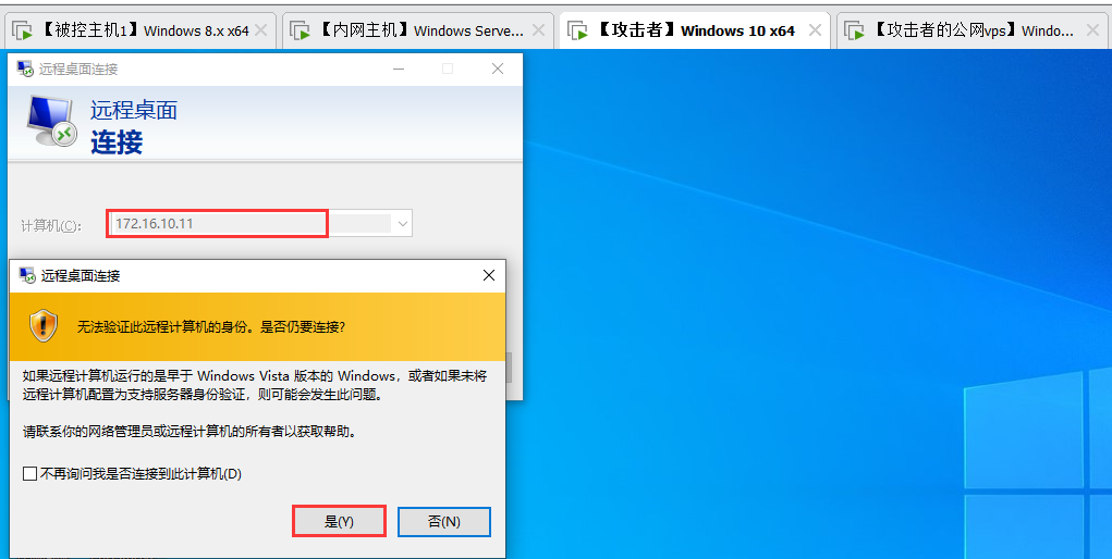 5、在攻击机上面连接被控服务器所在内网段的内网主机172.16.10.11: