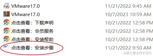 基本环境本文的电脑系统为window10; 经过多次测试,个人觉得最稳定的方案为 vmware17、mac os 12.5 、xcode 14.0,当然你也不用担心,这三个软件我都会将下载链接放到文中; 安装一、安装虚拟机VMware(并解锁mac)虚拟机VMware 提取码:w7ev 解锁器 链接:pan.baidu.com/s/1Mqd4wGPO…提取码:vpr8 因为VMware默认是没有Mac这个选项的,所以如果想装macos话,就需要先使用解锁器; 1-1、解锁mac下载unlocker-3.0.8解压缩后,就会得到如下的文件,右键以管理员的身份运行画红圈的文件,然后就会弹出cmd,按照步骤一步步操作即可; ![]() 1-2、安装vm下载完后,便有以下文件,点击画红圈的地方,便可以查看到vm的完整安装步骤,按照步骤安装即可;