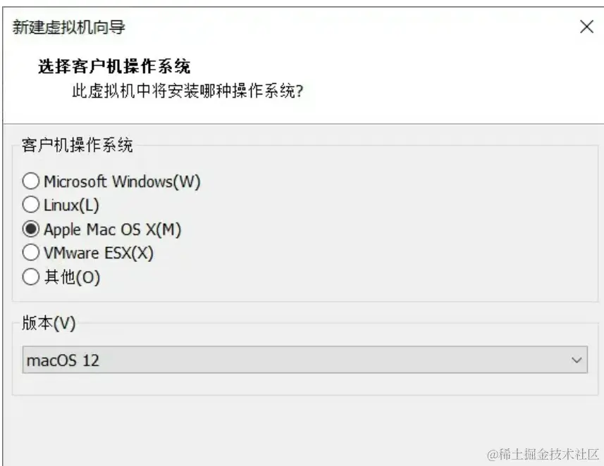 选择操作系统的时候请选择MacOS和版本macOS 12; ![]() 1-3、下载mac并配置到vm中提取码:z1fj 下载完mac系统的文件后,便点击vm虚拟机创建一个虚拟系统; ![]() 按照步骤点击next,到这一步的时候,则选择第二个,将你下载的mac系统地址填上;后面的步骤则一步步操作即可,硬盘最好留50-60g,因为后面安装mac系统最低要求35g,然后xcode14差不多20多个g,尽量将空间留充裕; ![]() 然后,你便可以得到以下的虚拟机,点击启动,然后就开始正式安装; ![]() 1-4、安装mac系统选择完语言后,便会来到这个页面,先将磁盘工具里面的 VMware Virtual SATA 盘符修改为任意名称, ![]() 然后点击第二个 安装 macOS即可,接下就是等待系统的安装,安装完后就是一些新机器的常规流程,比如设置用户密码等等的一些常规操作,现在你就可以在window电脑上使用mac系统了,当然还有些未配置,比如网络,xcode; ![]() 1-5、配置网络如果你的虚拟机无法连接上网络,可以右键点击该虚拟机,然后点击settings,再点击Network Adapter网络配置项,第一个是桥接模式,第二个是NAT共享主机IP地址,两个都可以试一下; ![]() ![]() 1-6、下载Xcode你直接在苹果的商店中下载xcode会显示让你先更新的mac系统,这时你需要去下载xcode14这个版本; 链接:www.cnblogs.com/sysin/p/174… 压缩包大概有7个多g,下载完后解压压缩包,然后双击安装即可,最终实际效果如下图,你便可以选择苹果的各个产品进行调试了; ![]() 结语以上就是个人在window系统中安装mac系统环境的整套流程,可以说是一波三折,最终系统在使用上也是差强人意,仅仅说是能用的程度,系统在过渡动画上很卡,查了原因,发现说是vm是用cpu来模拟gpu的功能,所以导致性能差,该方法仅仅是最后的选择方案,有mac还是使用mac是最优解,谢谢~🥗 作者:我搁这敲代码呢 链接:https://juejin.cn/post/7288963909591187496 来源:稀土掘金 著作权归作者所有。商业转载请联系作者获得授权,非商业转载请注明出处。 该文章在 2023/10/25 16:54:30 编辑过 |