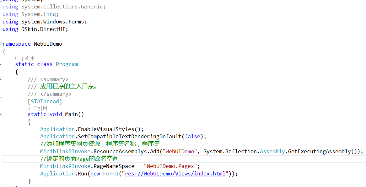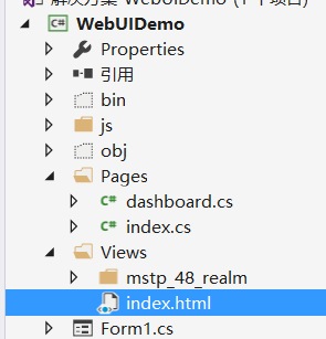 程序集里的资源Url写法是res://开头的 res://WebUIDemo/Views/index.html res://程序集名/若干文件夹/文件名 区分大小写