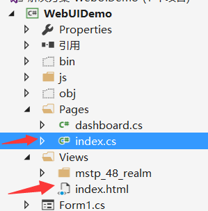 Html页面和C#类绑定,页面和类的名称要一样,Html在哪个文件夹无所谓,区分大小写, 支持主页面和框架页面的绑定