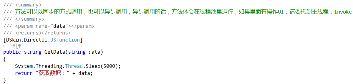 JS同步调用C#方法:参数对应,直接调用就是同步调用 JS异步调用C#方法:前面参数对应,最后加个包含一个参数的回调函数