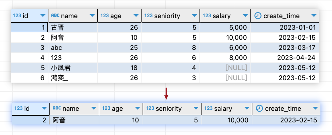 在这个语句中,^ 表示字符串的开头,$ 表示字符串的结尾,.{2} 表示匹配任意两个字符,.表示任意字符,{2} 表示恰好匹配两次 查询结果同上图结果一致,只返回古晋跟阿音2人。 通过上述示例,我们发现REGEXP与LIKE功能相似,但更为强大。它能够实现复杂且独特的规则匹配。 🌟 注意: 1、在正则表达式中,使用括号()可以创建捕获组,将括号内的内容作为一个整体进行匹配。例如,正则表达式(ABC)会匹配整个字符串"ABC"。 2、REGEXP默认采用部分匹配原则,即只要有一个匹配项,就会返回真。 3、尽管REGEXP的功能强大且灵活,在处理复杂模式匹配时也是不可或缺,但在处理大量数据时,其性能可能会受到影响。因此,在编写复杂的正则表达式时,我们应注重优化以提高查询效率。在必要时,还需考虑采用其他方法,如数据预处理或索引,以进一步改善查询性能。当然,对于简单的查询,使用LIKE操作符可能更为合适且高效。 关于SQL 中的正则表达式REGEXP,本次分享就到这了。 该文章在 2024/3/28 22:54:53 编辑过 |