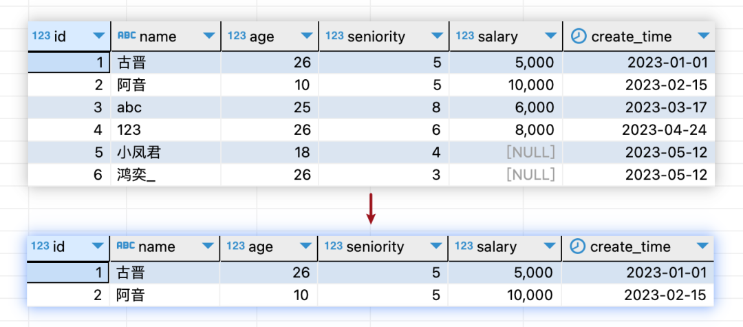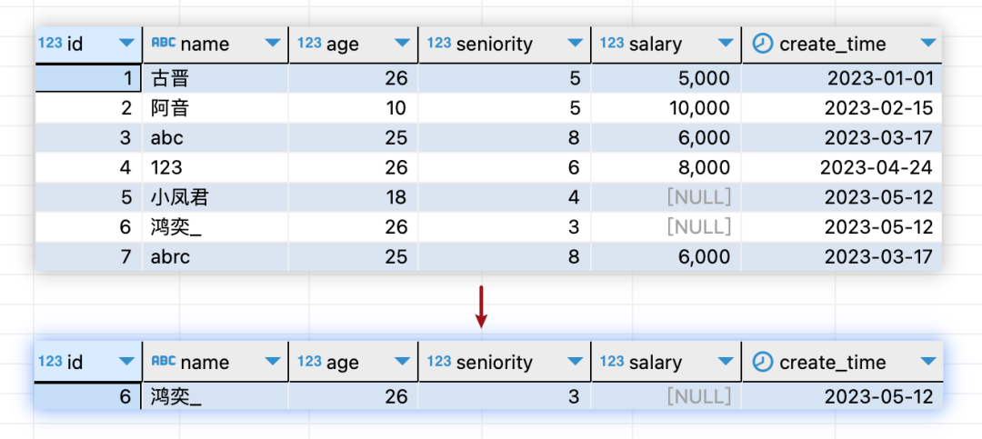 在 SQL 查询语句中,REGEXP 是一个强大的正则表达式匹配运算符,用于在字符串中执行复杂的模式匹配。通过 REGEXP,用户可以定义自己的匹配模式,对数据进行精确或模糊的搜索,从而有效地处理各种复杂模式的字符串搜索需求。这为数据提取和处理提供了极大的便利。 正则表达式使用REGEXP命令进行匹配时,匹配成功,则返回结果为真(1),否则返回结果为假(0)。 由于LIKE跟REGEXP都是用于字符串模式匹配,这里为了节省空间,本篇文章将沿用之前LIKE篇章中所采用的测试数据作为演示。