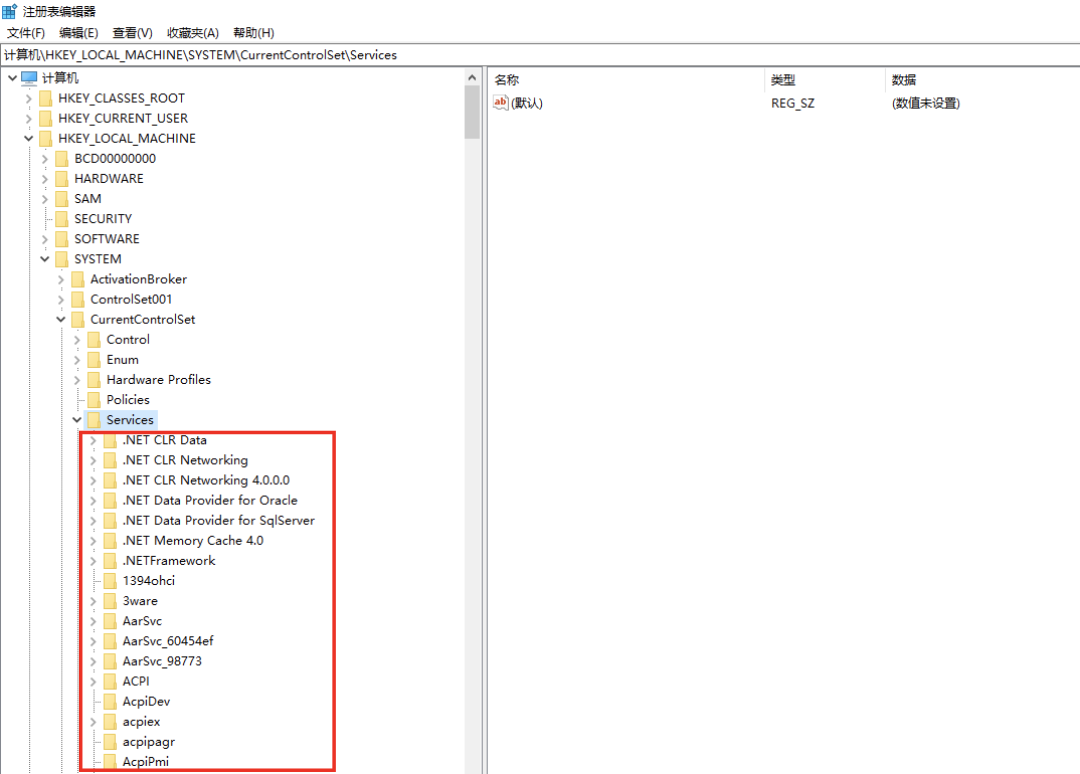 # 服务组HKEY_LOCAL_MACHINE\SOFTWARE\Microsoft\Windows NT\CurrentVersion\SvcHost# 服务HKEY_LOCAL_MACHINE\SYSTEM\CurrentControlSet\Service