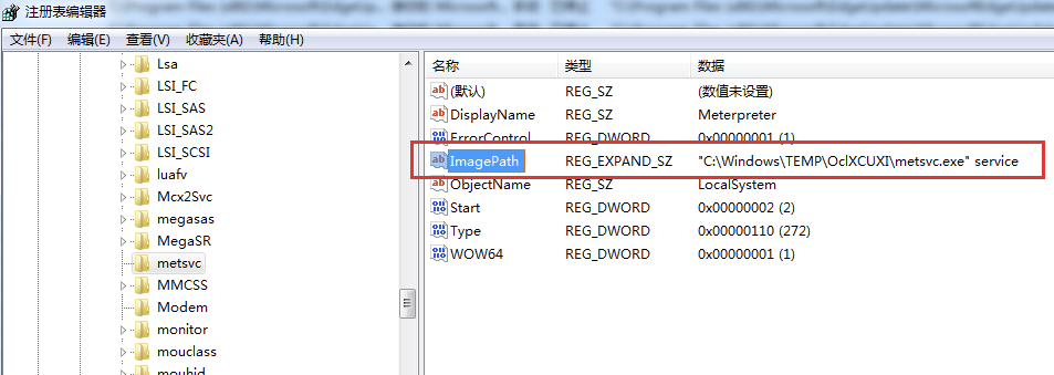我们前面也有提到,并不是所有的服务都会通过 svchost.exe 调用实现,以 Metasploit 为例:在获取到目标主机的 Meterpreter 之后,可以使用“run metsvc”命令在目标主机上注册一个名为 metsvc 的服务,注册的方式则是直接将恶意的可执行文件直接注册为服务。