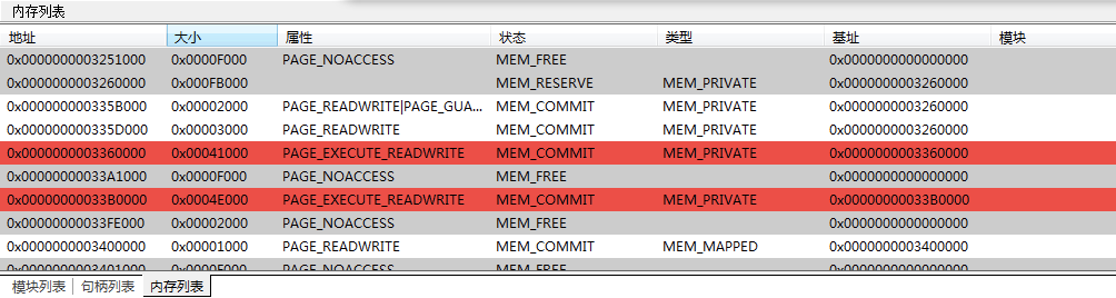 根据可疑线程的内存地址,可以进一步查看其内存片段,在火绒剑中,如果内存片段存在异常,会直接标红显示,针对异常的内存片段可继续查看其内存字符串或者转储分析,有可能就会发现惊喜!