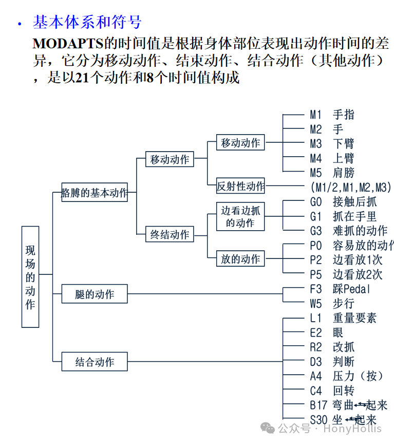 模特排时法(MOD)是 PTS 技术中的最新方法,它以简单的手指动作为基本单元,身体其他部位动作所需时间以手指动作一次所需时间的整数倍表示。