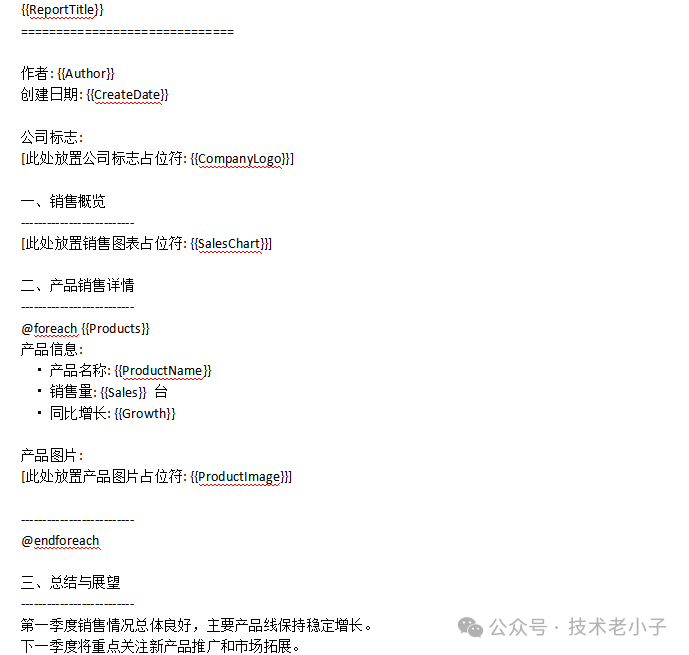 MiniWord.SaveAsByTemplate("销售报告.docx", "报告模板.docx", data);