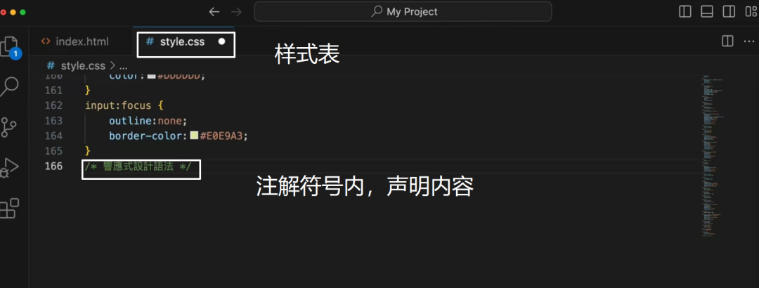 接下来我们一起来看看具体的技术实现。 CSS中有一个“媒体查询”的语法,媒体查询(Media Queries)是响应式设计的核心技术,属于 CSS3 规范。其本质是为不同设备或特性设置特定的 CSS 样式规则,让网页根据屏幕宽度、分辨率、朝向等条件动态调整布局。 实操讲解: 1.首先在CSS样式表底部,同时按下"ctrl"+"/"键,插入注解符号,声明以下为响应式设计的语法