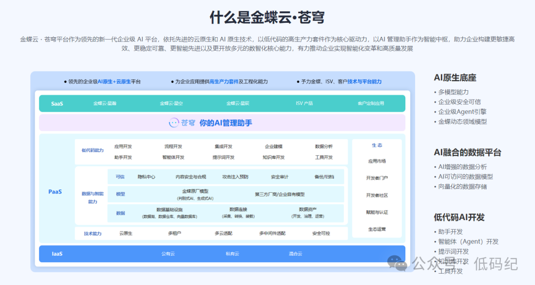 国外平台的优势是技术成熟、功能强大,缺点是价格高、本地化服务弱、对国内的政策法规(比如数据本地化)支持不够好。 2. 国内平台:懂中国业务,适合国内企业国内的低代码平台虽然发展得晚一些,但更懂中国企业的业务需求,比如对接微信、钉钉、企业微信,满足数据本地化、等保合规要求,还有本地化的服务团队,响应速度快。 国内的低代码平台主要分三类:原生低代码厂商,传统软件大厂平台和公有云厂商平台。 (1)原生低代码厂商:原生架构,可以定制复杂功能这些原生低代码厂商的共同特点是专注、灵活、创新,他们不断推动着低代码技术的发展和成熟。