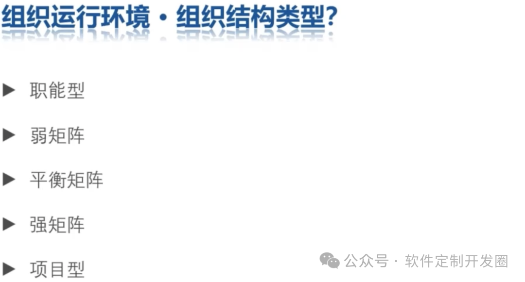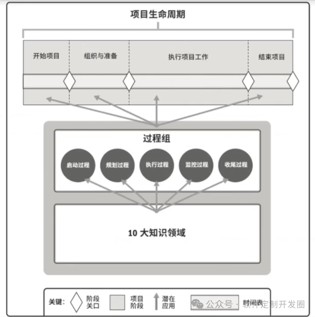 启动过程组最重要的作用是授权,授权我们开始项目,或者是授权项目中的某一个阶段,规划过程组就是做计划,制定当前阶段的工作计划,或者是制定整个项目的工作计划;执行过程组强调的是按照既定的方针、政策、计划去落实、去执行;监控过程组,关注的是绩效,整个项目的工作进展怎么样了,收尾过程组,某个阶段结束,或者是整个项目结束我们做好善后工作。十大知识领域,通常我们讲项目成功的标准是,多快好省,就是范围进度成本质量,那除此之外,我们还能够了解到,资源的多少,会影响到工期,会影响到成本,资源的水平和等级会影响到质量,会发现这些因素之间存在着各种各样,千丝万缕的关系,所以通常又有了,范围、进度、成本、质量、资源和风险,六大制约因素,那项目我们不都是需要自己完成,可能还需要外部采购,我们还需要管理客户,管理甲方,管理业主,就涉及到了相关方管理,无论是外部的相关方,还是,内部的团队成员相关方,我们都需要,和大家打交道,去沟通;项目启动之前做项目评估、商业论证到有计划的编制,从发现商业机会到验证,这个事情的可行性和价值,那一旦有可行性,有价值,项目经理走马上任,我们为了扛发现,我们就可以考虑把项目分成n个阶段,以及需要更高级别的管理者,在阶段和阶段之间做出关键决策,决策是否进入下个阶段,最后整个项目结束,就需要把我们的成果提交给运营,在管理项目的过程中,每个阶段,我们可能都需要开展,启动、规划、执行、监控、收尾这5个过程组的管理工作,那到底管什么呢,又横向分成了10大知识领域,范围、进度、成本、质量、资源、沟通、风险、采购、相关方再加上整合管理,最后就变成了我们比较繁杂的项目管理体系多个项目怎么协调,还需要我们关于整个项目的生存环境,有一个整体的认知,那就带出来这3个单词,项目、项目集和项目组合,项目是创造独特的产品、服务和成果而开展的临时性工作,那项目集他的工作重心是什么呢,在工作中,我们会发现,A项目,他的结果,可能会影响到B项目,两个项目之间会存在某种关联关系,依赖关系,这种情况下,要更高级别的管理者在更高层面上,把这两个事儿给他组合好、协调好,这就是项目集管理的工作重心,他的中心思想就是想办法1+1>2而项目组合关注的是,对企业来讲要做的是这么多,有限的是资源、资金,所以要把事情分为轻重缓急,它从投资组合这个角度出来的,把钱投资到哪里,可以帮助企业获得最大的回报呢,所以他的工作重心就是,把和战略相关的内容,放到一个圈里,然后进行排序,以便于更好的合理的分配我们的人财物,关注的是做什么事情,对企业来说是正确的,而项目集和项目经理更关注的是这件事情我们怎么把它更好的完成,所以项目、项目集和项目组合和运营就共同组成了价值交付系统,从而更好的帮助企业实现商业价值。我们不可能在真空中存在,项目启动的背景就包含法律法规,会对我们的工作和生活形成约束,形成限制,所以就带出来这2个术语:事业环境因素和内部组织过程资产,事业环境因素是从组织这个角度去区分的,又可以分成内部因素和外部因素,内部因素,比如说我们公司现在已有的设备、设施、员工的能力包括资源的可用性,这种外部因素和内部因素,通常会对我们的工作开展,形成约束、形成限制,而内部组织过程资产,他的关键词是独特的,因为每家企业,他的程序、流程、规章、制度和各种规范都是不一样的,需要结合企业的实际情况,制定出来这些,每个企业有自己独有的过程、政策和程序标准规范,每个企业对知识,有自己的积累和沉淀我们在开展项目,或者是运营或者是项目组合、项目集,干事情之前都要参考一下,有没有这种内外部的因素会对工作形成约束和限制,开展工作,根据我们企业现有的过程、政策和程序,这件事情我们怎么做、如何去处理、如何去完成,知识库的作用是以史为鉴,我们希望,同样的错误只犯一次,同样的坑只踩一回,所以在提醒我们,在开展任何工作之前,我们都要参考的两个元素,事业环境因素、内部组织过程资产,项目经理在项目中的地位,所以需要大概了解一下常见的5种组织结构类型,职能型、弱矩阵、平衡矩阵、强矩阵、项目型,对企业来讲,大事,权利就相对大一些,小事情,那么管这件事情的人的权利就不需要大到无边,分析企业运转中,大家的权利、责任、利益怎么去分配,职能型和弱矩阵,这两个类型中,项目经理基本上没有决策权,职能经理来掌握项目的预算,项目经理的权利是小于职能经理的,从平衡矩阵开始项目经理名正言顺的有了一定的决策权,所以在项目中的权利和职能经理旗鼓相当、平起平坐,联合掌握项目的预算,而强矩阵项目,项目经理在项目中的权利大于职能经理,所以项目经理单独掌握项目的预算,项目型,是项目经理下面挂靠所谓的职能部门,相当于把职能部门归属到项目组里面,项目经理的权利,从小到大,这么一个变化的过程,这件事情是有高层来做这个主,高级管理层,通过组织智力,来分配好权、责、利,PMO全称:项目管理办公室,有三种类型:支持型、控制型、指令型支持型PMO,刚成立,没有太多的积累,干活没有底气,所以需要给项目经理提供更好的服务,但是我们没有强制性的要求,对项目经理进行培训和指导,没有权力要求项目经理遵守他们的规定,控制型,随着工作的开展,积累沉