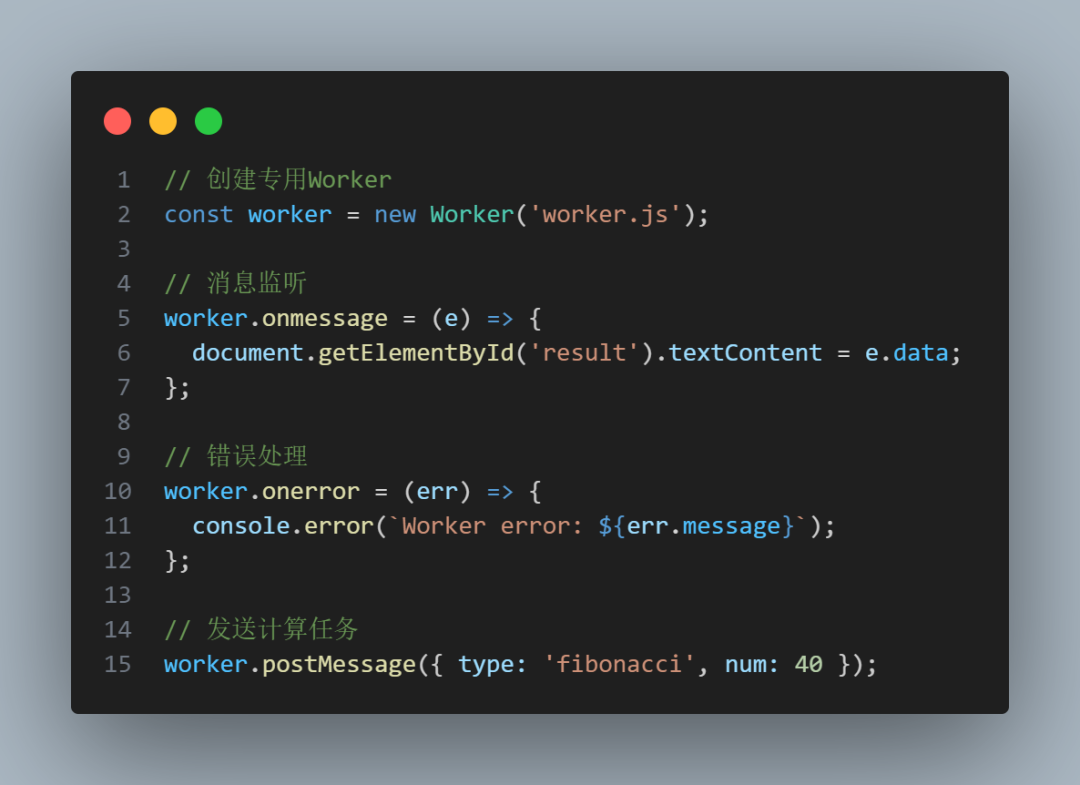 1.2 性能优化的误区开发者常用的"优化"手段: ![]() 这些方案本质上仍在主线程排队执行,如同在单车道高速公路上让货车假装自己是跑车 二、WebWorker:突破次元壁的线程方案2.1 线程模型的降维打击浏览器线程架构: