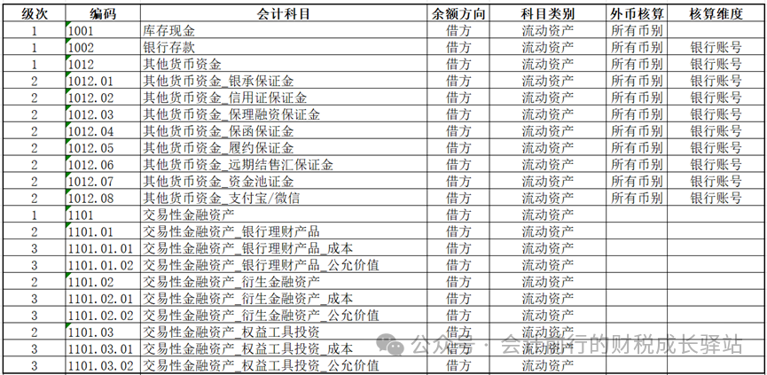 1.货币资金和交易性金融资产科目设置示例
