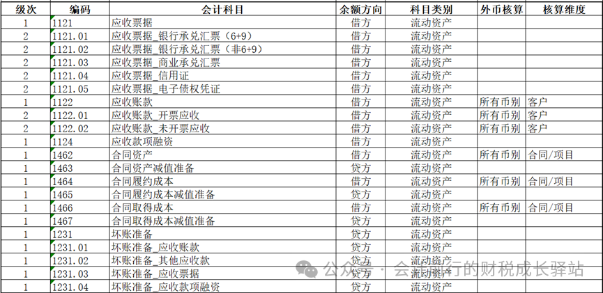 2.2应收账款科目需下设明细科目,如“应收账款-开票应收”和“应收账款-未开票应收”,方便总账与应收款管理模块对账。并设置以客户维度的辅助核算,方便与客户进行对账。