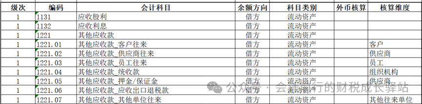 3.2其他应收款可以按往来单位类型下设明细科目,设置相应的辅助核算项目。如“其他应收款-客户”、“其他应收款-供应商”、“其他应收款-员工”、“其他应收款-应收出口退税款”、“其他应收款-其他单位往来”等。