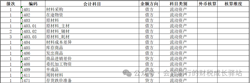 4.存货科目设置示例