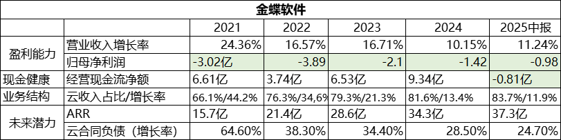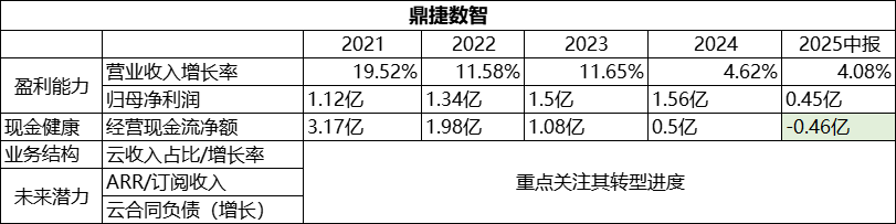 1、传统业务断崖式下滑,云业务增长失速。 24年与25年的营收双降是最危险的信号,传统软件license收入的下滑速度,远超云订阅收入(24年云收入同比-3.4%)的填补能力,云业务增速从55.5%骤降至个位数甚至负增长,说明用友的新客获取和老客拓展面临巨大阻力、行业化价值待评估、BIP战略投入巨大但变现缓慢。营收负增长是比亏损更危险的信号,说明其产品定价权、客户留存率、市场占有率正在松动。 2、主营业务造血能力衰竭,利润质量有待提升。 归母净利润从盈利滑向亏损,且经营现金流持续恶化,不仅是因为未来研发、营销层面的投资,也因主营业务造血能力衰竭。现金流净额与净利润的严重背离,表明利润质量差,大量亏损被应收账款等资产挂账,公司运营对外部融资的依赖加剧。 3、潜力与现实的残酷割裂。 ARR和云合同负债的增长是唯一的亮点,证明了用友产品战略和平台价值理论上的存在潜力,积累了未来的收入池。然而,ARR无法有效、及时地转化为当期营收,说明签单能力未能高效转化为交付能力和客户成功能力。可能因为大项目定制化交付周期长、成本超支、客户实际使用效果未达预期导致增购困难等。 4、BIP生态战略的双重困境。 对内,高举高打的平台研发投入巨大,但边际效益递减,拖累当期利润;对外,在高端市场,面临SAP等巨头的正面压制,在中端市场,又被友商的标准化产品和敏捷打法快速蚕食。其战略定位陷入两面作战的被动局面。 写在后面: 近五年的财报数据,表明用友仍是一家为生存而战的转型巨头。它手握未来的期权(ARR),但正消耗当下的本金(现金流与资本)。其成败关键在于:能否在未来12-18个月内,将ARR潜力大规模、高效率地转化为营收增长,并显著改善现金流。 但作为国产龙头软件商,我们依然还是希望并期待,用友能够痛痛快快的打一场翻身仗! 二、近五年财报看金蝶:收入换引擎,亏损换空间,现金流定乾坤。 1、 增长动力完成根本性转换。 云业务已成为金蝶的绝对主导(占比从66%→84%),更关键的是,在总收入保持双位数增长的同时,云业务增速平滑下降(44%→12%),这并非动力衰竭,而是基数扩大后的自然规律,标志着从爆发期步入稳健成熟期。ARR的持续高速增长(15.7亿→37.3亿)是转型成功的铁证,它构成了收入的压舱石,确保了未来收入的极高确定性和可预测性。 2、亏损是投资而非损耗,且效率极高。 近五年金蝶的净利润持续为负,但亏损率大幅收窄(从-3.89亿收窄至-0.98亿)。这不是经营恶化,而是主动用当期利润换取未来高价值ARR的战略选择。每单位亏损所换来的ARR增长效率在提升。 3、经营现金流是生命线。 这个指标是之前一位湖北陈姓用户建议观察的。季节性波动的中报外,年度经营现金流持续改善且强劲为正(24年达9.34亿),极大程度打消了市场对其“烧钱续命”的担忧,证明其云订阅模式具备了强大的自我造血能力,意味着金蝶拥有更充足的资源和时间来完成转型。 4、合同负债:增长质量的“预警器”。 云合同负债增长率虽放缓,但持续保持高位增长。这表明金蝶的新增订单相对健康,客户愿意预付费用,其对产品的依赖性和付费意愿强劲,为未来收入确认提供了坚实保障。 写在后面: 近五年的财报数据,表明金蝶的转型战略执行果断、路径清晰、且已驶过最危险海域。它用前期亏损成功购买了通往未来的“门票”(ARR),并用健康的现金流证明了自己有能力兑现这张门票的价值。其当前的任务已从“如何活下去”转变为“如何赢得更漂亮” ,即如何提升增长质量、突破市场天花板并画出明确的盈利曲线。 三、近五年财报看鼎捷:一片亏损中的异类,静水流深的精工细作。 1、增长放缓,但盈利坚实。 营收增速从近20%平滑放缓至个位数,是动力缺失?还是深耕制造业细分领域的战略定力?可能都有。但纵观近五年,可以肯定的是,鼎捷没有追逐SaaS风口、没用亏损换规模;而当下的AI追逐,是产品定位层面更好的服务客户市场。难得的是,连续五年稳定盈利,在行业一片亏损中堪称异类,这证明了其业务模式的内生性健康和极强的客户粘性。 2、现金流趋势:一个关键的警示信号! 鼎捷的经营现金流从3亿多下滑至负值,这与稳定的净利润形成了反差,意味着为维持增长,在客户信用账期或项目垫资上做出了让步,或是项目回款周期变长(交付质量?)。这是鼎捷模式面临的核心挑战:在不大幅增加风险的前提下,增长天花板清晰可见。 写在后面: 鼎捷的选择揭示了行业另一种真相:并非所有企业软件公司都必须转型为平台型SaaS。其路径是 “软件+服务”的深度捆绑,而非“订阅+生态”的广度扩张。鼎捷吃透了制造业流程复杂、替换成本高的特点,做深、做透、成为客户身边不可或缺的老师傅。这种路径的优势是风险极低、盈利稳定;但代价是估值想象空间有限,增长受限。(当然,雅典娜和AI,可能也是鼎捷规避这种弊端的路径选择) 近五年鼎捷的财报数据证明,它是一家清醒的“手艺人”企业,在巨头鏖战的夹缝中,依靠专业主义和盈利纪律,同样能活得很好。但它也面临“手艺人”的经典困局:如何在不破坏这份“好”的前提下,变得“更大”?它的下一步抉择,将决定其是成为一家值得尊敬的“隐形冠军”,还是一家增长见顶的“传统企业”! 对于鼎捷出身的我,由衷期望老东家可以不忘初心,蒸蒸日上! 四、近五年财报看浪潮:项目制软件公