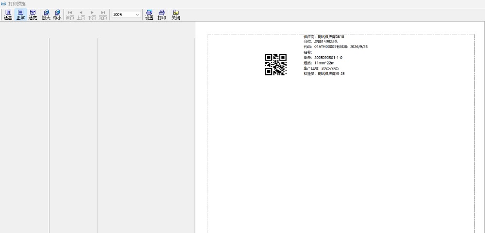 7.在二维码标签界面内,模板选择“test”,点击打印标签。然后就会弹出打印预览界面。