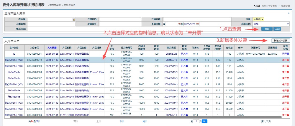 :点晴ERP-委外入库开票查询-操作流程![]()