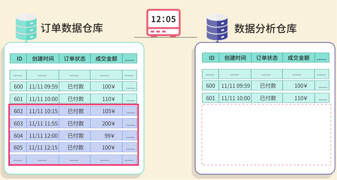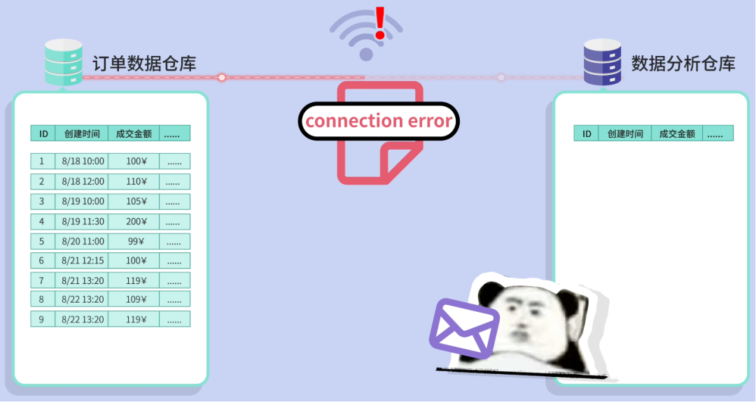 你是小阿巴,刚入职一家电商公司。 ![]() 第一天上班,老板就交给你一个艰巨的任务:定期把公司的订单数据同步到数据分析仓库。 一听到数据同步这 4 个字,你立刻汗流浃背了。 ![]() 你的哥哥程序员鱼皮,曾经就是在大公司负责数据同步。结果双十一当天,近 2 小时的订单数据没有同步过去。数据分析团队看到的数据是 2 小时前的,以为销量没达到预期,就没有及时给热销商品补货。最终错失了 1 个多亿的销售额!鱼皮也因此被老板优化掉了。 ![]() 作为一名程序员,怎能轻易退缩?你握紧拳头,一定要完成好这个任务! ![]()